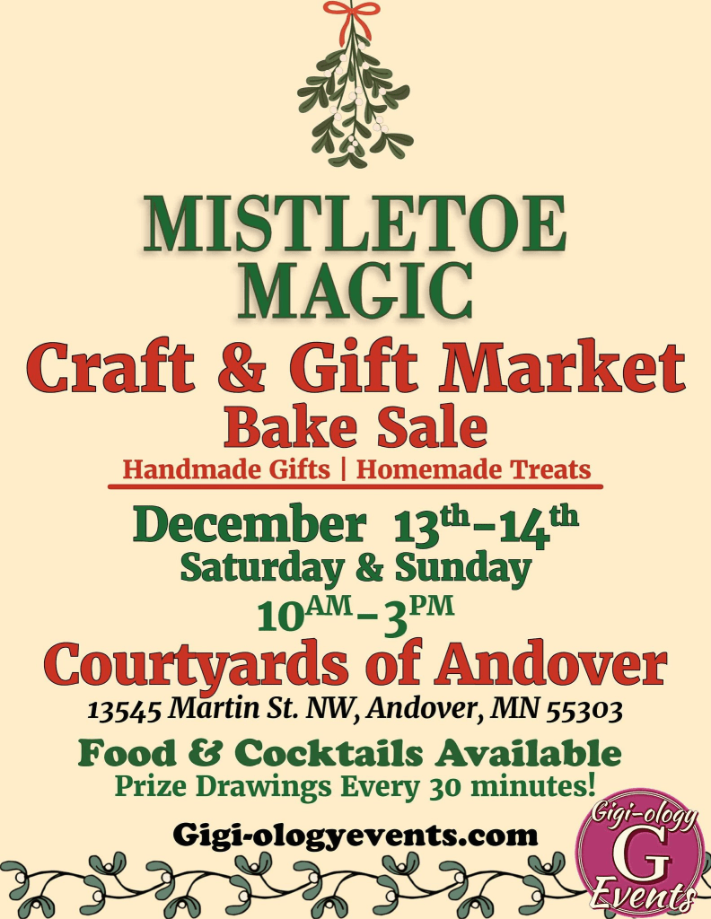 Next update is on December 13-14 we’ll be doing an event closer to home! A two day craft and bake sale at the Courtyards of Andover.